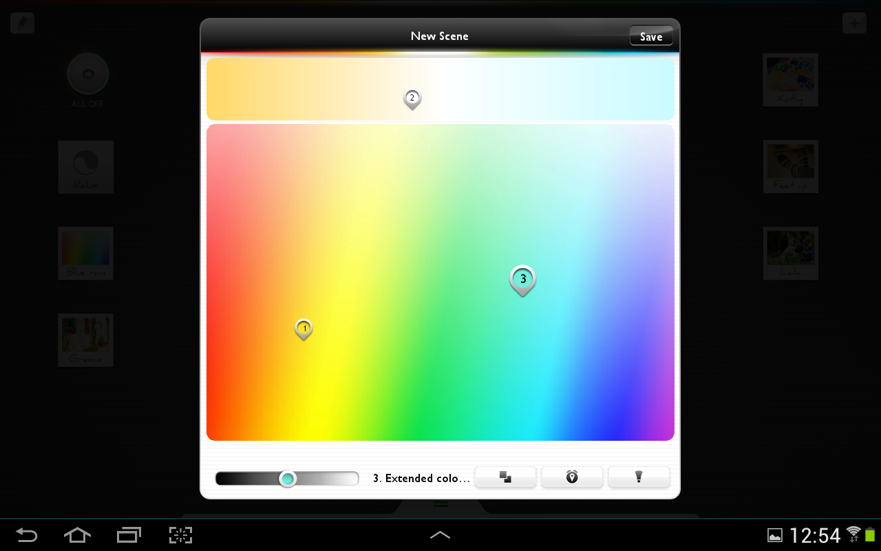 С помощью вашего мобильного устройства вы сможете выбрать любой из 16 млн различных цветов и оттенков для всех и каждой отдельной из имеющихся в наличии ламп. Доступны также целые цветовые схемы, одни из которых существуют по умолчанию, а другие можно создавать самостоятельно, выбирая цвета из палитры вручную или используя различные изображения и фотографии. В стандартные композиции подсветки входят такие, которые способствуют, по мнению разработчиков, созданию определенного настроения в комнате. Более теплые оттенки создают атмосферу отдыха и спокойствия; яркие и почти белые цвета отлично настраивают на рабочий лад, а также неплохо подходят для чтения; разноцветные и яркие цвета добавят больше энергии и заряда в привычный интерьер вашего дома.
