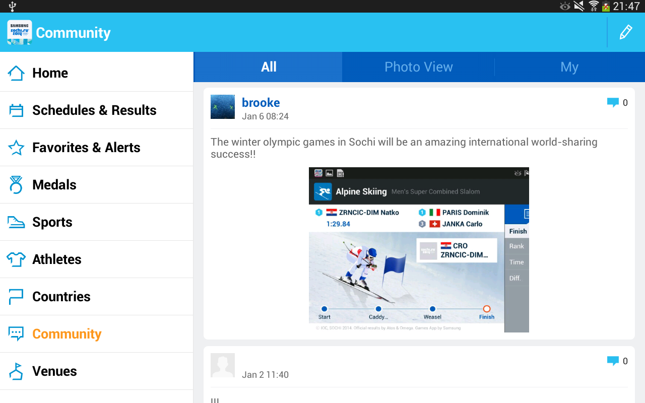Пользовательский интерфейс Sochi Winter Olympics очень удобный и понятный. При этом в приложении нет никакой лишней информации. К сожалению Sochi Winter Olympics пока работает только на смартфонах от Samsung, но, видимо, это временный баг, который к началу олимпиады должны устранить. Скачать Sochi Winter Olympics с Google Play можно по этой ссылке.