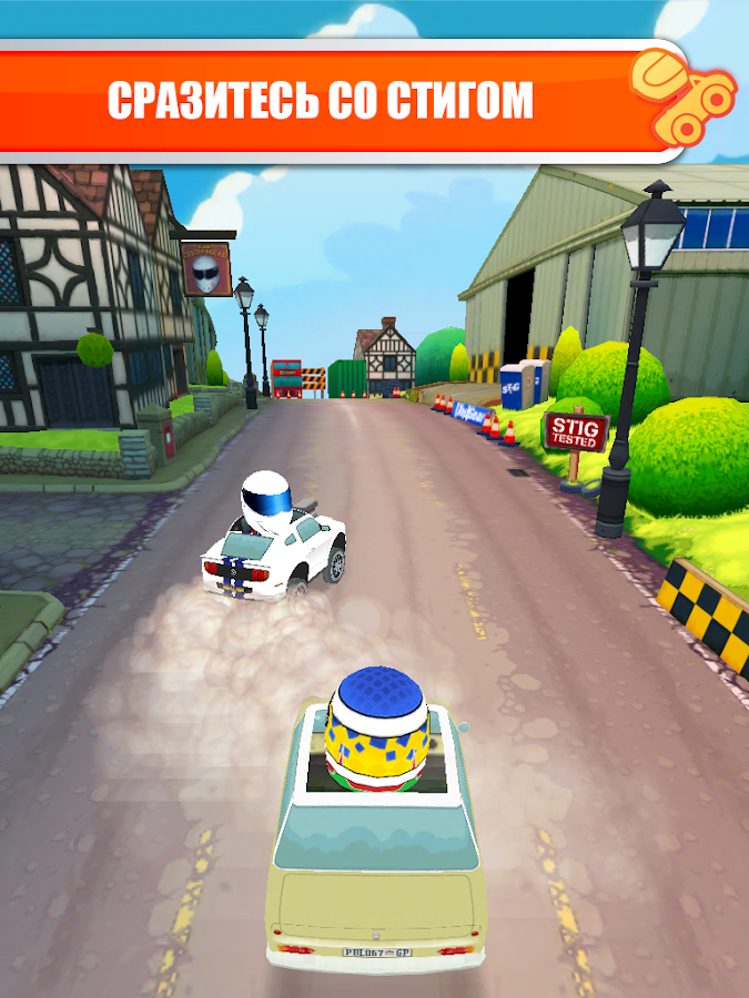 Top Gear: Race The Stig – это бесконечный раннер, в котором вы должны уворачиваться от машин и перепрыгивать через фургоны и прочие препятствия в надежде обогнать легендарного обезличенного гонщика из Top Gear. Все это будет происходить на знакомых из передачи локациях. Водить же придется один из культовых автомобилей, ранее засветившийся в шоу. Кроме того, в игре присутствуют такие средства передвижения как космический корабль и Неразрушимый пикап. Еще одна особенность Top Gear: Race The Stig – это весьма солидный набор шлемов, при помощи которых можно создать свой собственный образ. Если же вы довольны своими результатами, то похвастаться ими можно в социальных сетях Facebook или Twitter.