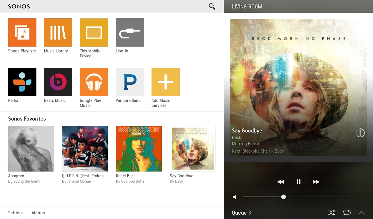 Sonos – это компания, которая производит беспроводные стереосистемы с очень качественным звучанием. Вместо шнуров вам придется подключить все к сети WiFi, объединив звук во всех комнатах своего дома. Конечно же, в таких условиях было бы грешно не разработать специальное Android приложение, чем, собственно, разработчики компании и занимались некоторое время, в результате чего Sonos для Android можно найти в Гугл Плей.
