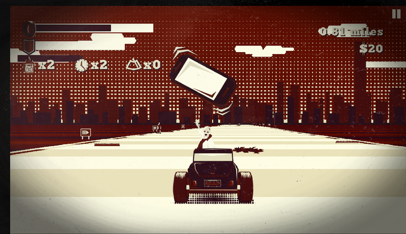 По своей сути Dead End является олдскульной гонкой с бесконечной трассой, которая генерируется в процессе прохождения. Вы же должны проехать как можно большее расстояние, минуя различные преграды и сбивая идущих по трассе оживших мертвецов. Но на этом Dead End не заканчивается. Другой важный аспект игры – это апгрейды. Заработав достаточно денег, вы можете прокачать свой автомобиль, что в далнейшем позволит преодолеть большее расстояние. Не обошлось и без системы рейтингов, благодаря которой можно померяться своими достижениями с друзьями.