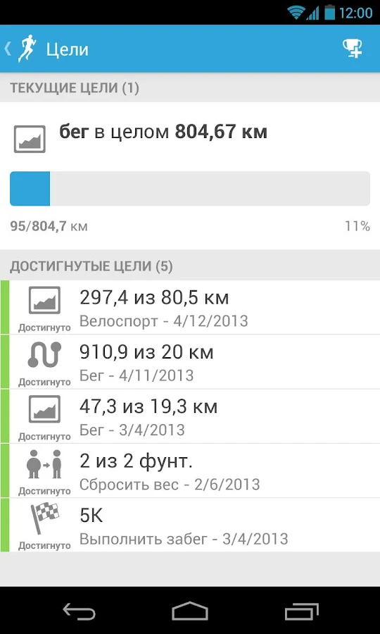 Кроме того, в RunKeeper ведется подробный журнал тренировок, а все новые личные рекорды не только учитываются, но и отображаются в приложении таким образом, что вы сразу же об этом узнаете. Благодаря использованию системы целей вы всегда можете сравнить желаемые результаты с действительными.