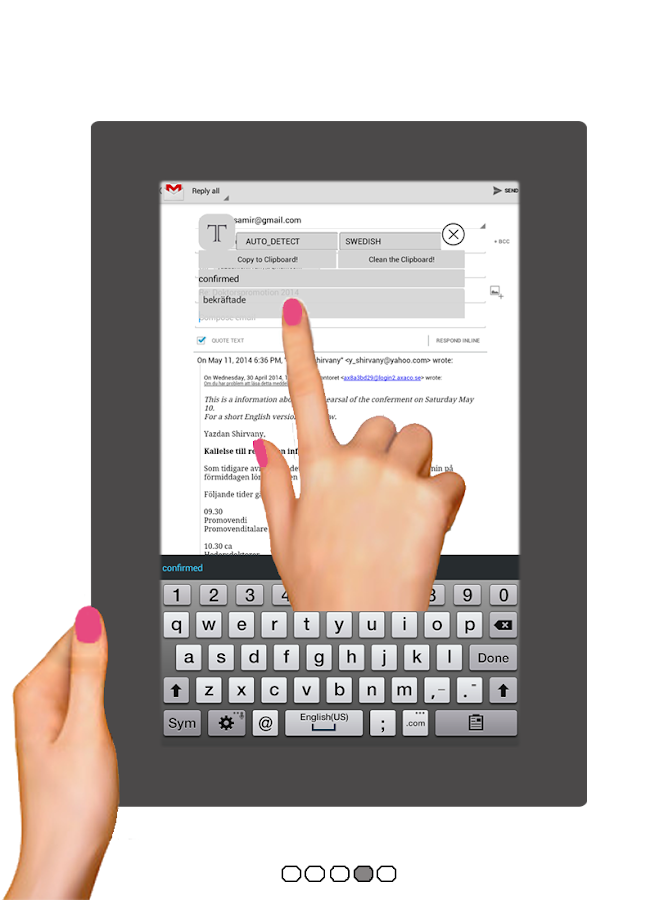 С Inapp Translator вам не надо переключаться между разными приложениями, чтобы сделать перевод. Кнопка Inapp Translator всегда находится поверх остальных приложений, а чтобы перевести любой текст, вам просто необходимо скопировать его в буфер обмена.