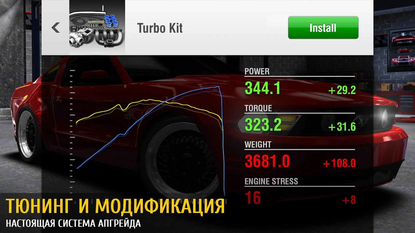 Если же говорить о тюнинге, то возможности тут практически безграничные. Автомобили можно не только менять внешне, но и усовершенствовать их начинку, добиваясь тем самым более серьезных показателей. В Racing Rivals есть буквально все от закиси азота до крутых дисков и резины от Nitto.