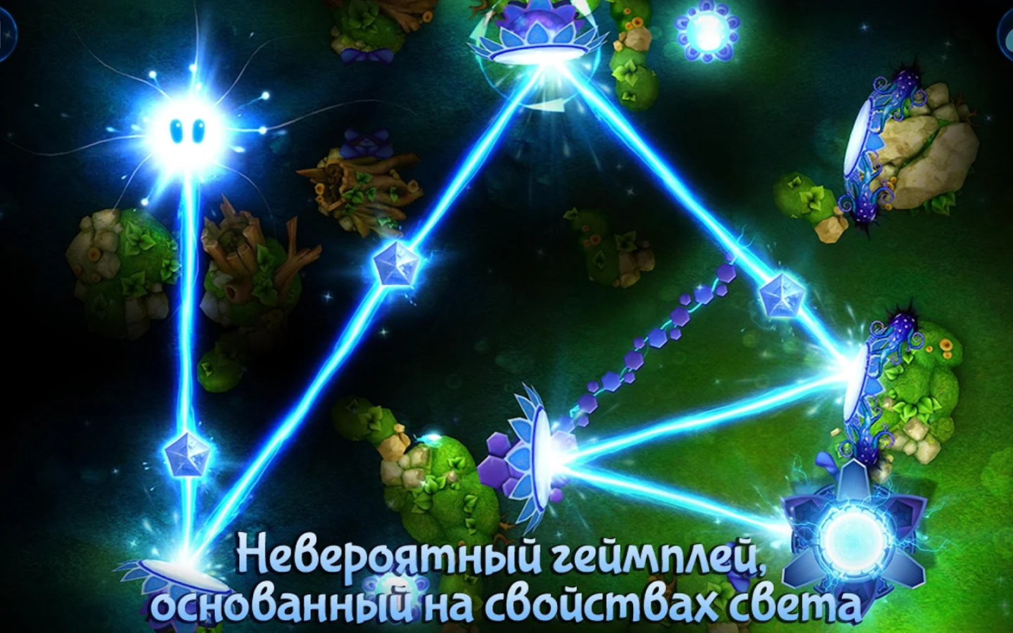 God of Light включает в себя 3 разных мира и состоит из 75 уровней. Благодаря интеграции с Google Play Games, результатами можно делиться с друзьями. Отдельно стоит отметить музыкальное сопровождение, которое позволяет с головой погрузиться в сказочную вселенную God of Light.