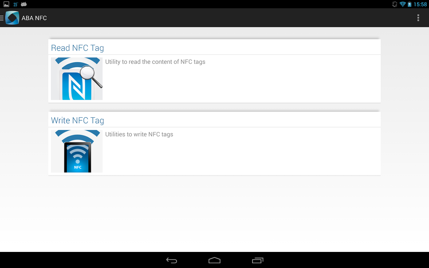 ABA NFC - это прекрасное приложение для создания NFC тэгов. Вы можете создать любую команду, начиная с набора номера и заканчивая изменением настроек звука. Разместив готовые тэги в машине или офисе, вы сэкономите себе кучу времени,так как ваш девайс будет выполнять различные действия без вашего последующего вмешательства. Не забудьте только проверить, поддерживает ли ваше устройство NFC. Скачать ABA NFC можно по этой ссылке с Гугл Плей.